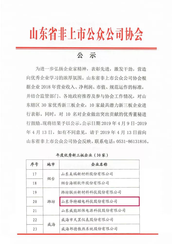 山东华特磁电科技股份有限公司 2019-04-17 点击912次
